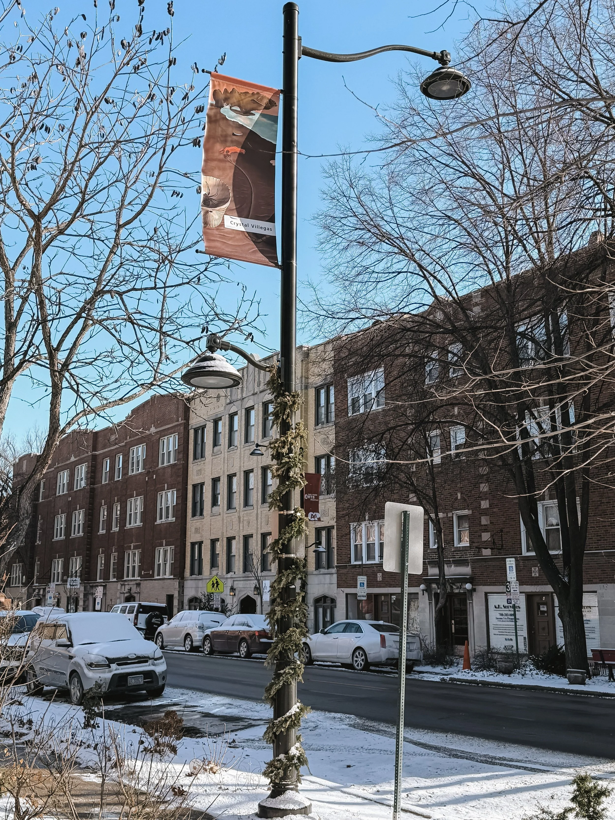 I’m excited to share that my artwork was selected for light pole banner installations in two locations in my former neighborhood. Displayed in a public, everyday setting, the work is now part of the visual rhythm of the street.